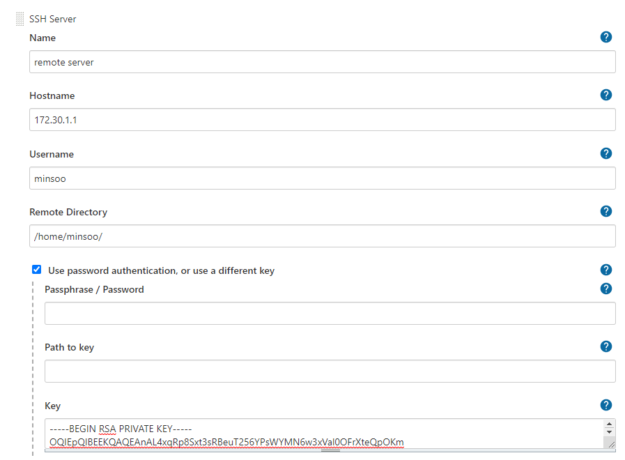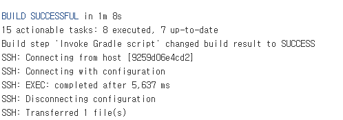 - Exec command: 파일 전송이 모두 끝난 이후 원격 서버에서 실행할 명령어